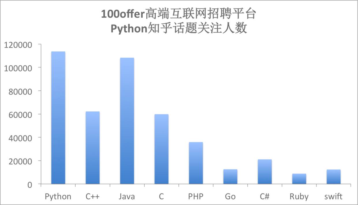 在百度网页数上,Python处于高位,在知乎话题关注人数上,Python位于首位。